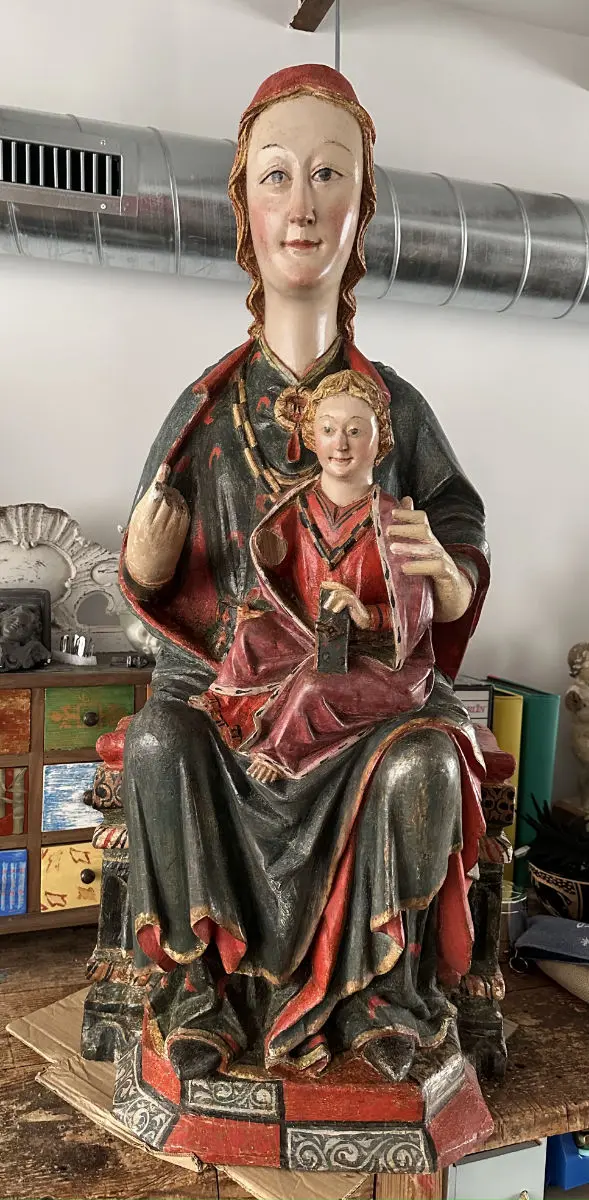 Se colocó la cabeza en su sitio, y en este caso, dado que existían fotografías de la talla antes de que se rompiera, pudo rehacerse el brazo de la Virgen y el librito.