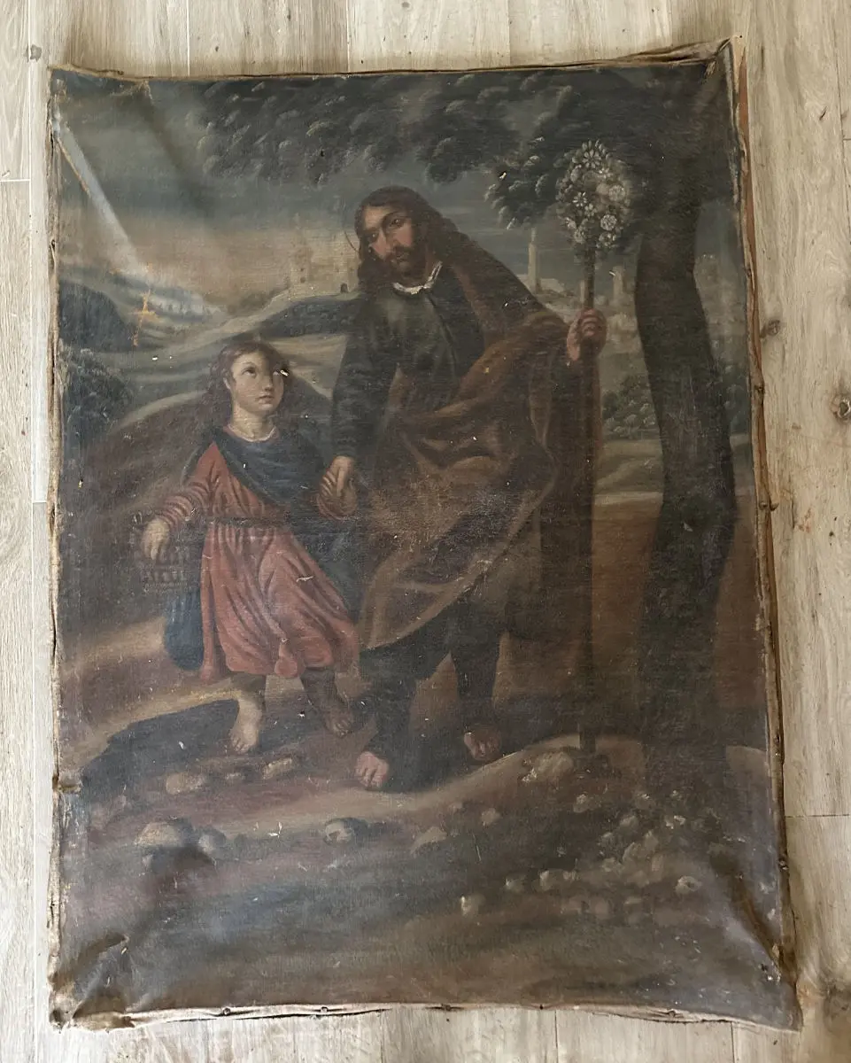 El lienzo llegó sin bastidor y con gran parte de las capas de preparación y policromía desaparecidas, además de barniz oxidado.